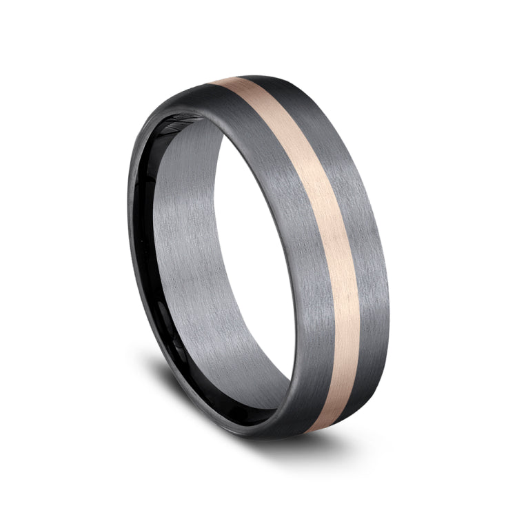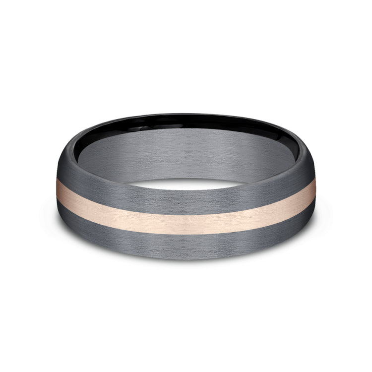6.5mm,Grey Tantalum and 14K Rose GoldSatin finish with center stripe