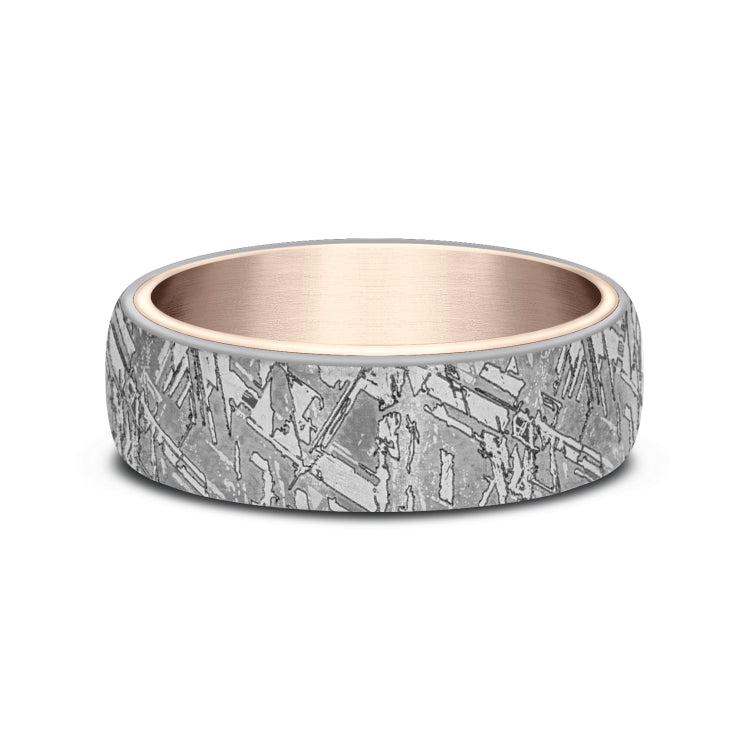 6.5mm, Comfort fitGrey Tantalum and 14K Rose GoldMeteorite pattern