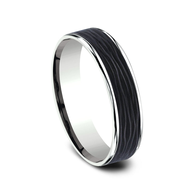 5.5mm, Comfort fit14K White Gold and Forged Carbon FiberForged carbon fiber center, thin edges