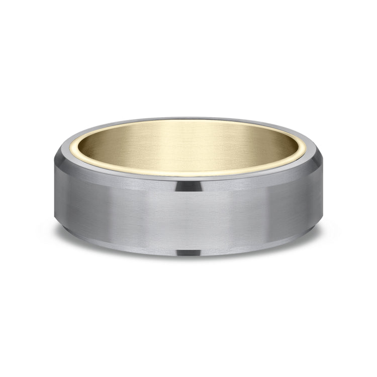 6.5mm, Comfort fit14K Yellow Gold and Grey TantalumSatin finish, slightly beveled edges