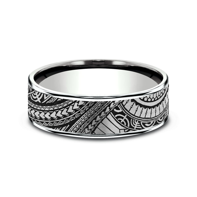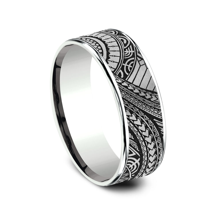 7.5mm, Comfort fit14K White Gold and Grey-Black TitaniumPolynesian inspired design, thin edges