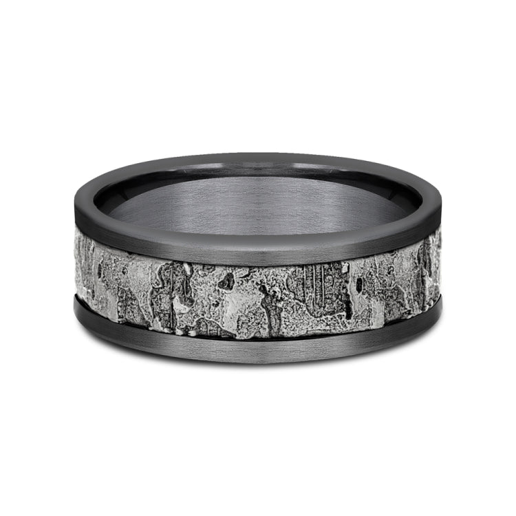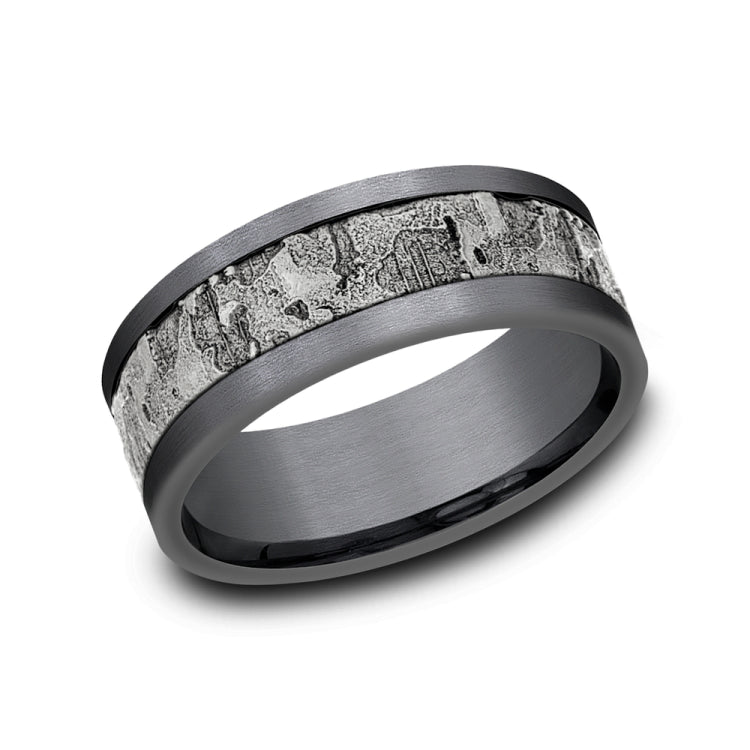 8mm, Comfort fitGrey Tantalum and 14K White GoldWall fracture designed center, straight edges