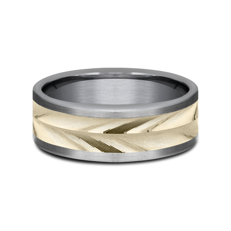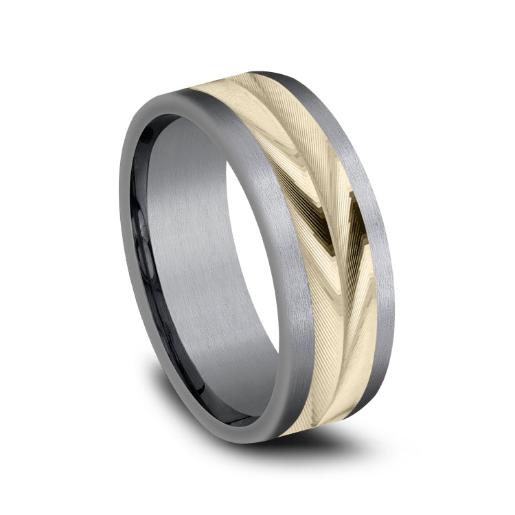 8mm, Comfort fitGrey Tantalum and 14K Yellow GoldPolished small wheat patterned center