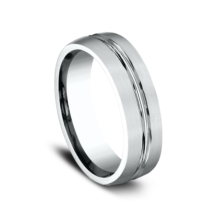 6.5mm, Lightweight comfort fit14K White GoldSatin finish, polished concave center cut