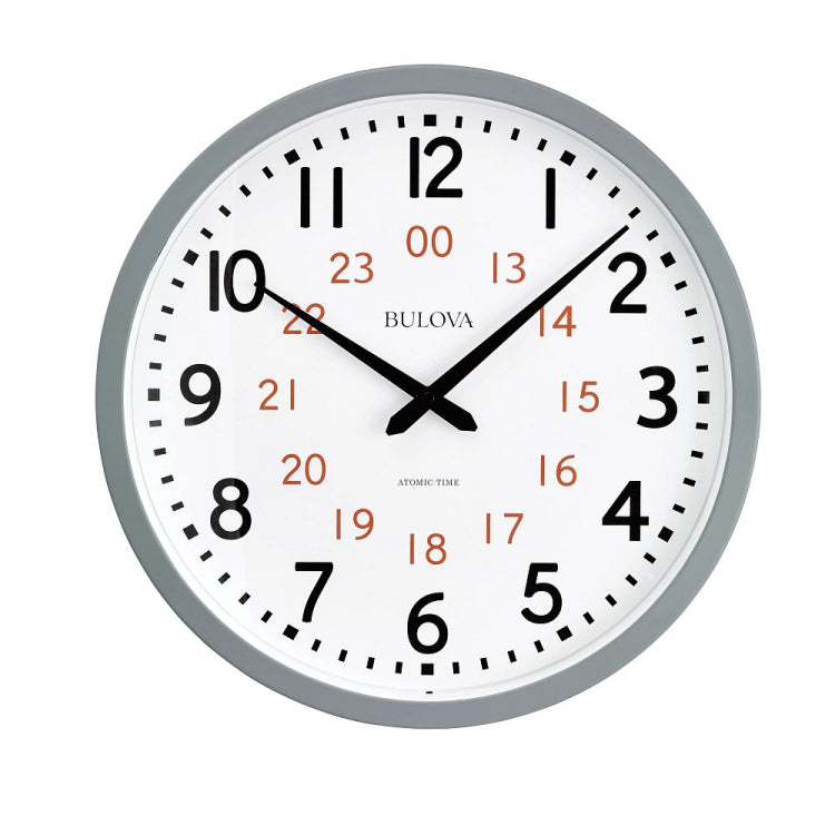 Time and temperature, please. The LCD inset digital feature displays the date/day and Fahrenheit or Celsius room temperature, Gold tone-finish aluminum case, gray subtle dial with bold white Arabic numbers, protective glass lens. Quiet sweep (no ticking) seconds hand, Self-adjusting quartz movement.