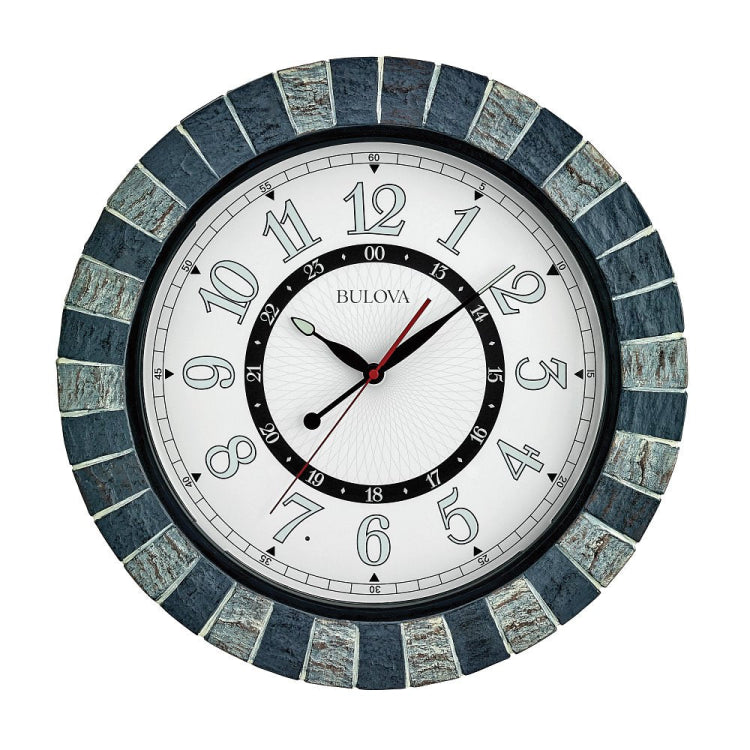Sleek design adds contemporary flair to this urban sized pendulum wall clock. Hardwood case, espresso stain finish highlights the wood grain and silver-tone industrial effect milled dial with raised hour markers. Bulova’s exclusive slow-swing pendulum moves back and forth in a relaxing motion.