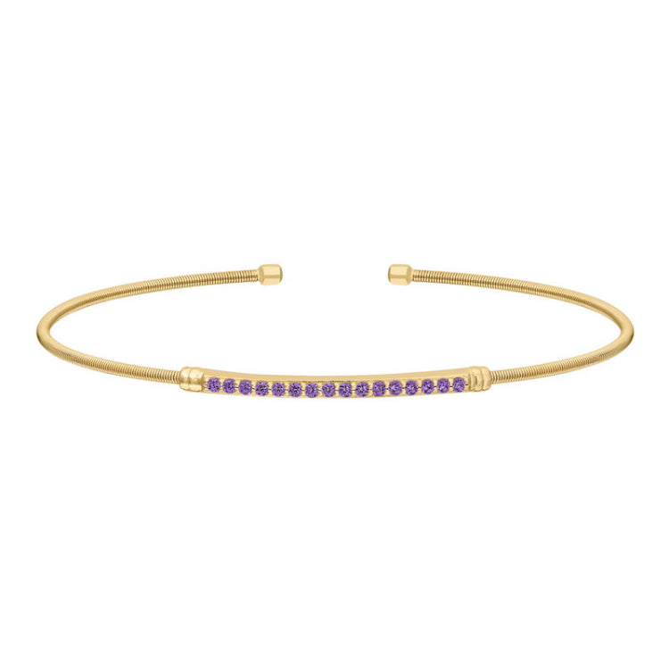 Gold finish sterling silver cable cuff bracelet with simulated amethyst birth gems - february