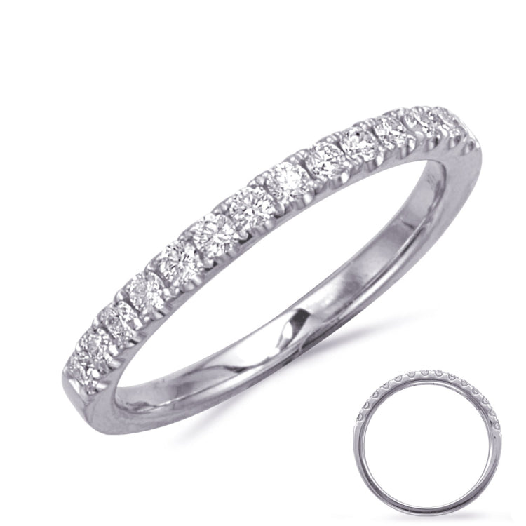 This band is available in 14K White Gold. There are a total of 14 stones. There are Rounds with a total carat weight of 0.3 set in a Micro Prong setting.