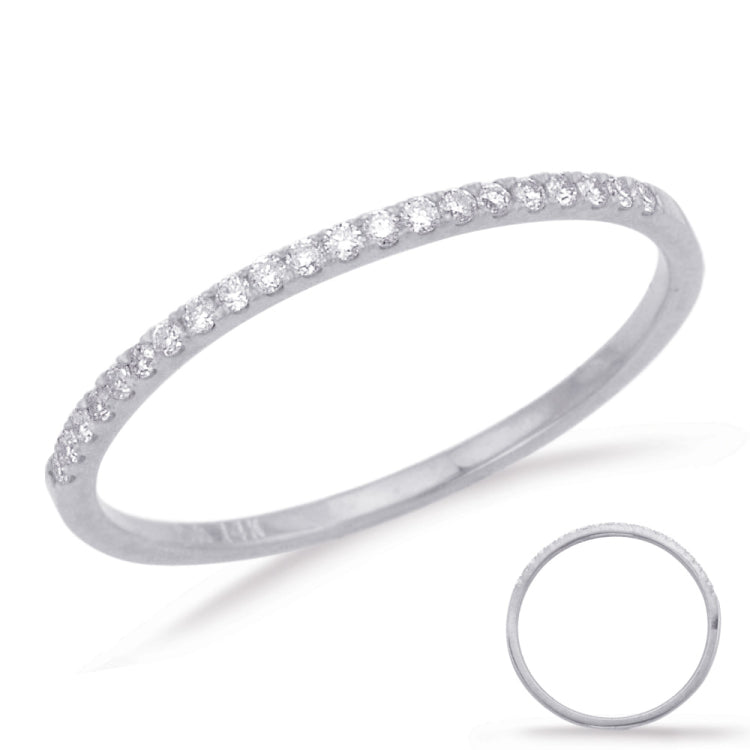 This band is available in 14K White Gold. There are a total of 21 stones. There are Rounds with a total carat weight of 0.08 set in a Micro Prong setting.