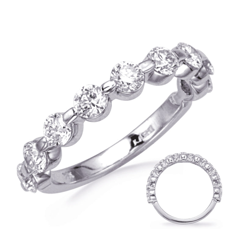 This Band is available in 14K White Gold. There are a total of 9 stones. There are Rounds with a total carat weight of 1.44 set in a setting.