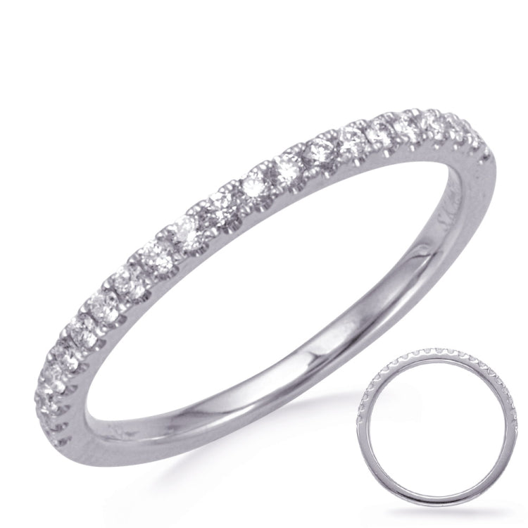 This band is available in 14K White Gold. There are a total of 21 stones. There are Rounds with a total carat weight of 0.22 set in a Micro Prong setting.