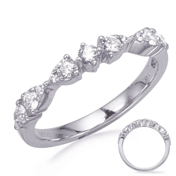 This band is available in 14K White Gold. There are a total of 13 stones. There are Rounds with a total carat weight of 0.44 set in a Micro Pave|Prong Set setting.
