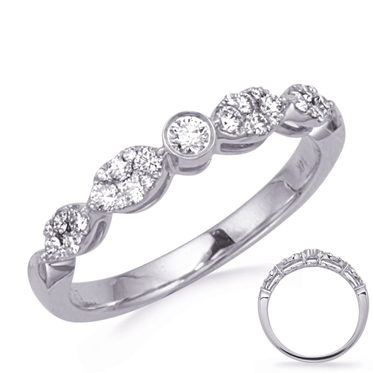 This band is available in 14K White Gold. There are a total of 41 stones. There are Rounds with a total carat weight of 0.33 set in a Micro Prong setting.