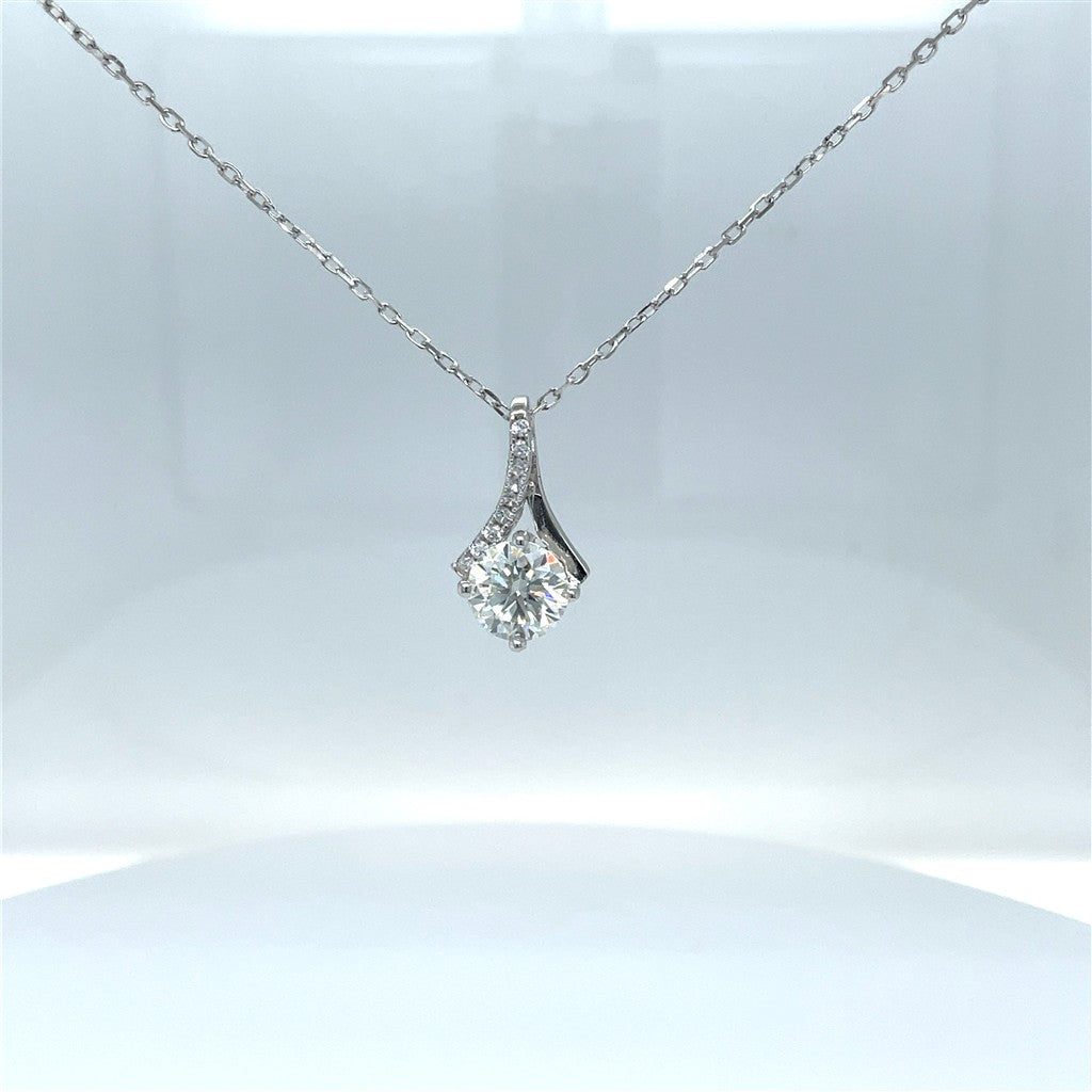 Sterling Silver Moissanite Necklace, 18" Adjustable Cable Chain