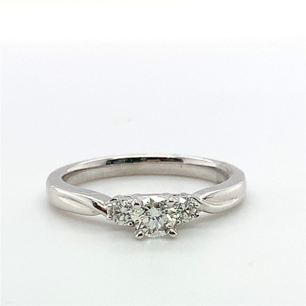 14Kt White Gold Three-Stone Solitaire Complete with Center Diamond Engagement Ring.25ct Center Diamond.35tdwMatching Band: 100-01828