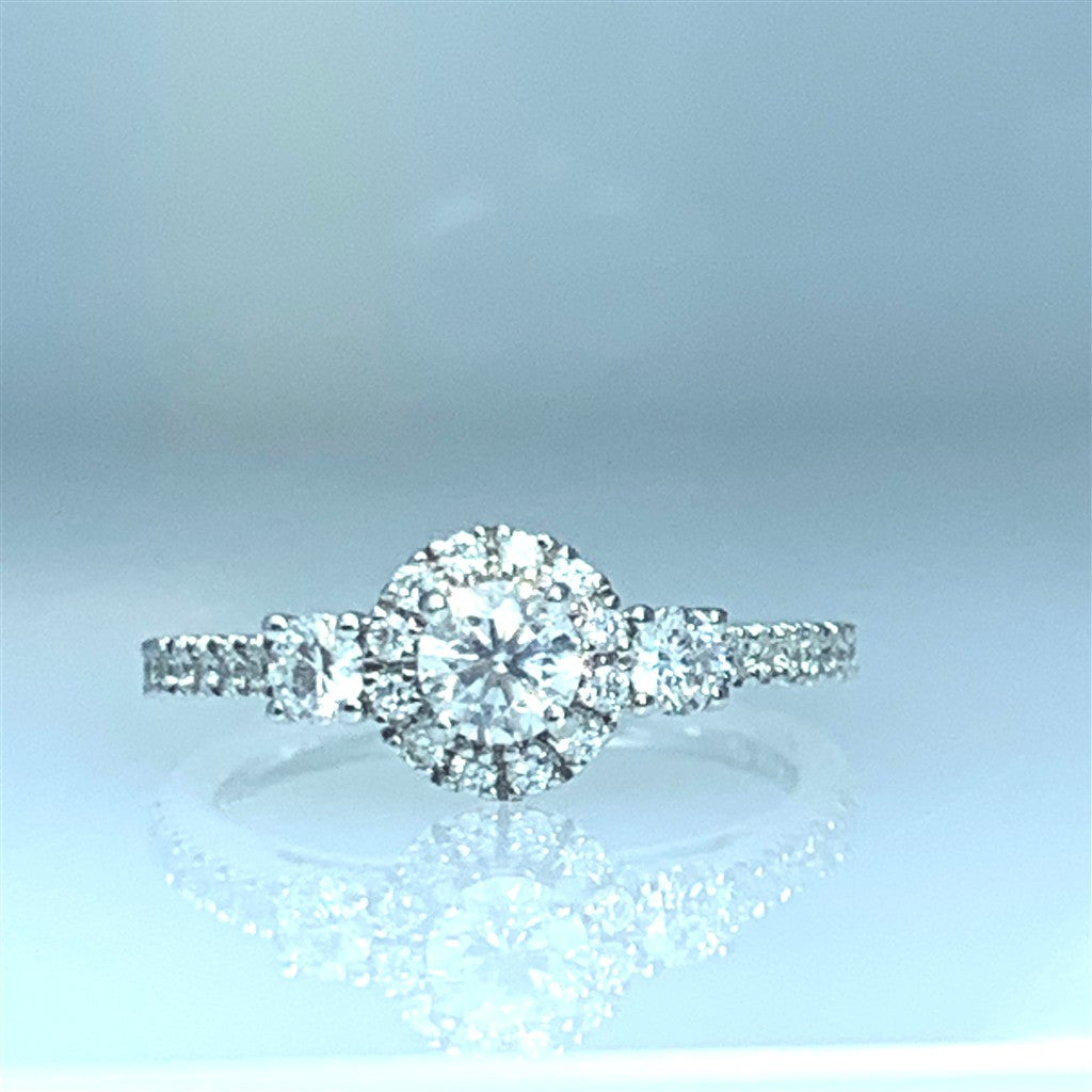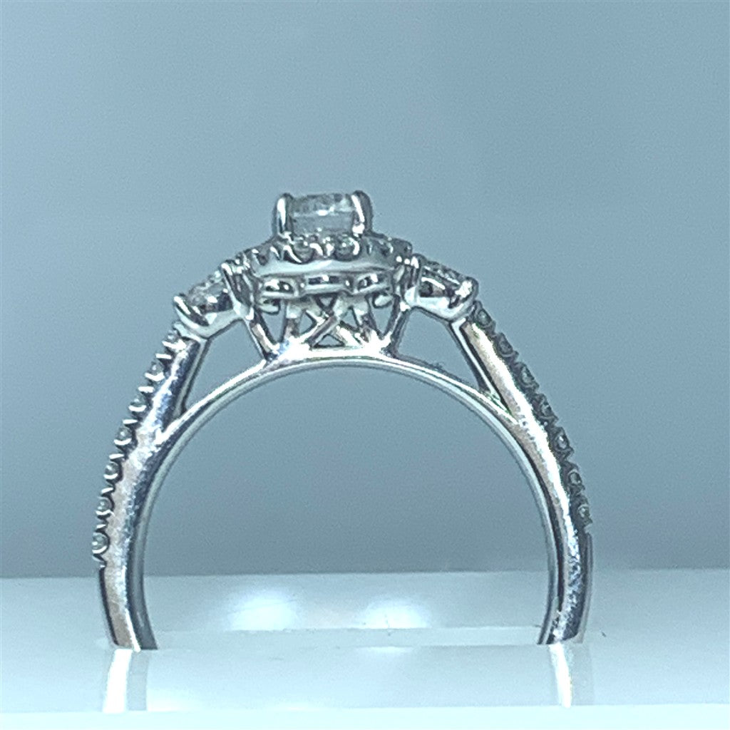 14Kt White Gold Three Stone Halo Engagement Ring Complete with Center DiamondCenter:1/3ct .798tdw Matching Band100-01716