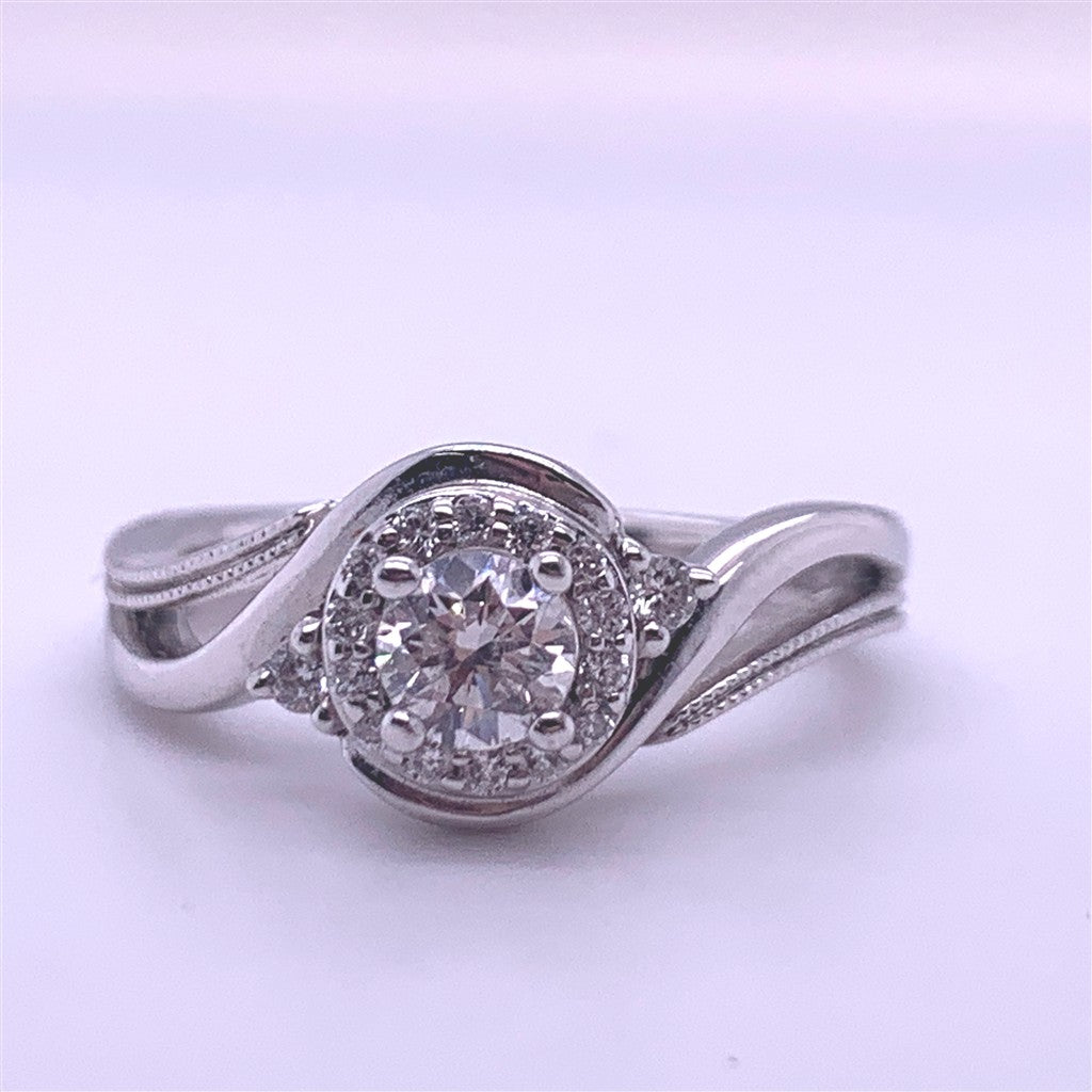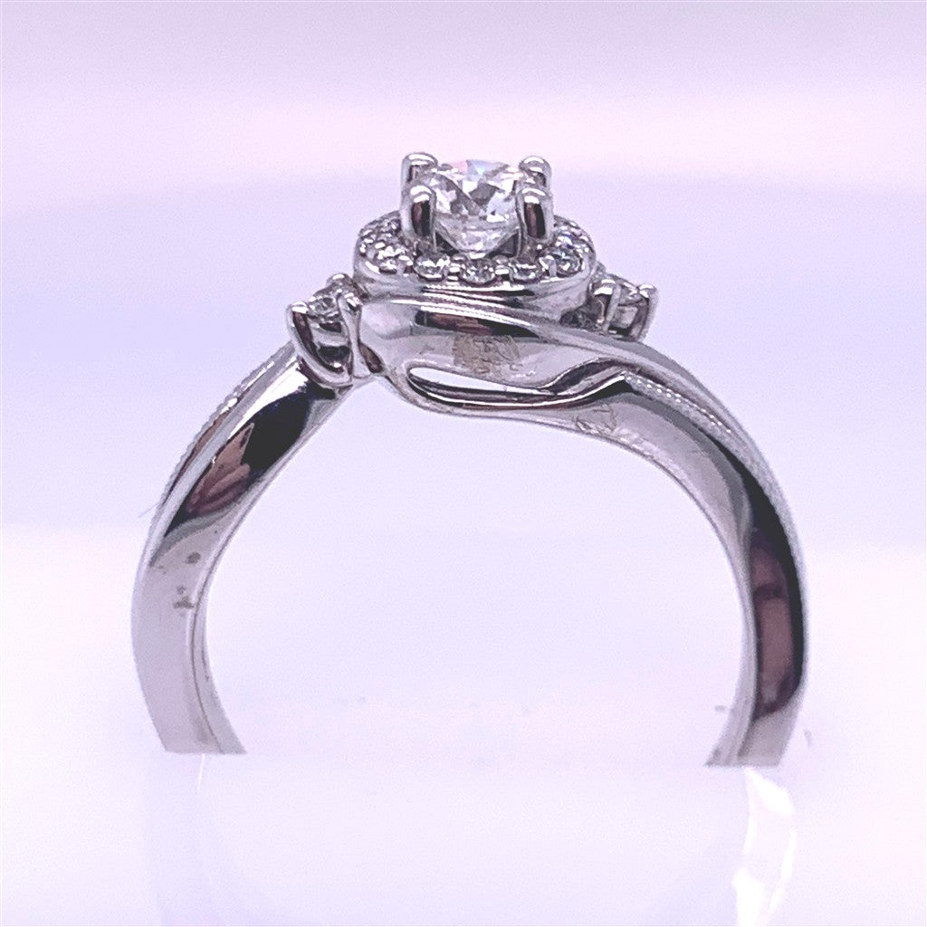 14Kt White Gold Halo Bypass Engagement Ring Complete with Center DiamondCenter: 3/8ct Natural Round DiamondVS1 ClarityG/H Color.0542 tdw