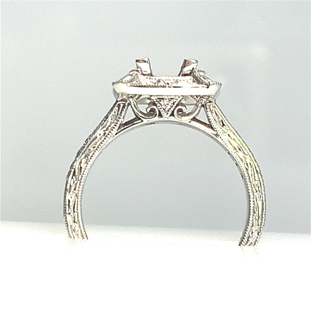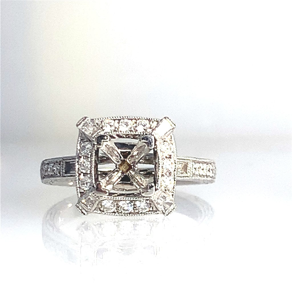 14Kt White Gold Vintage Halo Engagement Ring .42ctw*CZ Center Stone*