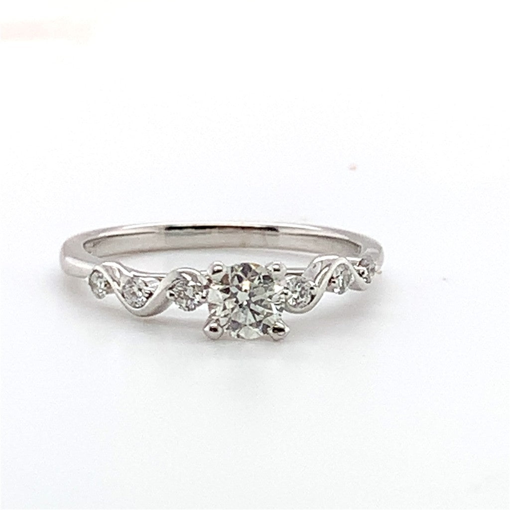 14Kt White Gold Vintage Diamond Engagement Ring Complete With Center DiamondRound Center Diamond: .33Ct .46TdwMatching Band: 100-01864