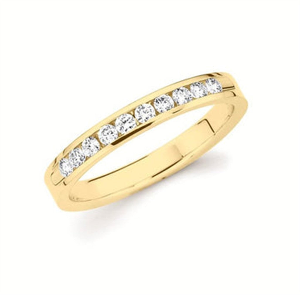 14Kt Yellow Gold Channel Set Diamond Wedding Band 10 Diamond Rounds 0.025 Ct Each I1 Clarity0.25tdw