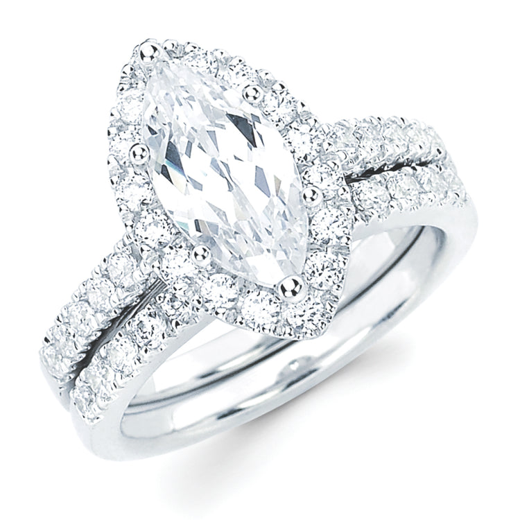 Halo Bridal: 1/2 Ctw. Diamond Halo Semi Mount available for 2 Ct. Marquise Cut Center Diamond in 14K Gold Engagement ring and wedding band sold separately