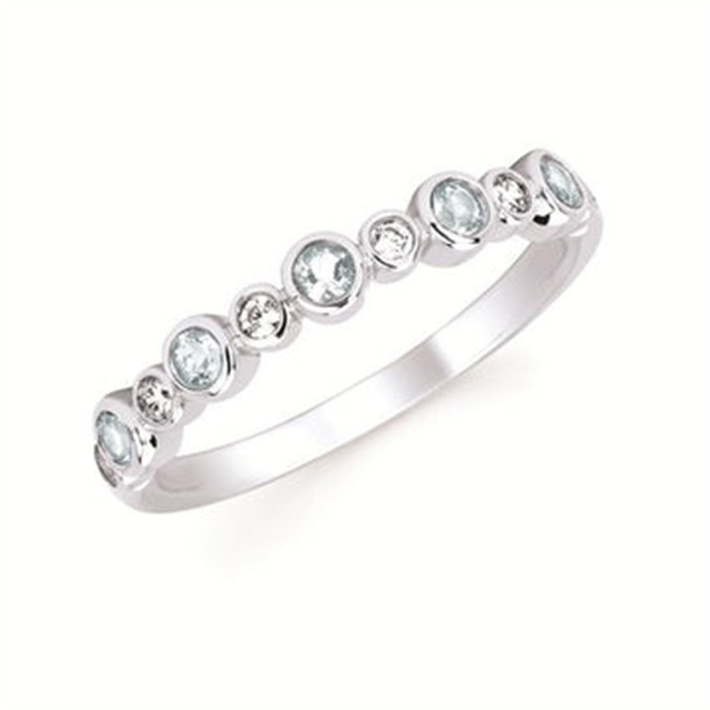 14Kt White Gold Aquamarine Diamond Fashion Ring.09 tdw Size 6.5