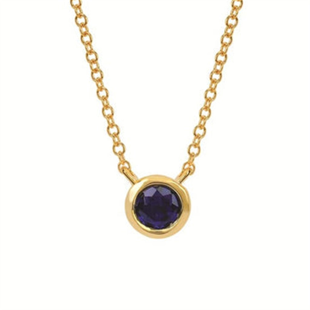 10K Yellow Gold Created Blue Sapphire Pendant, 18" Chain