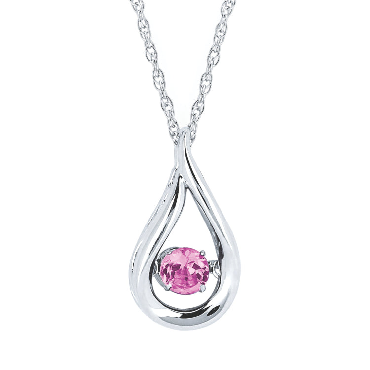Shimmering Diamonds Teardrop Pendant with 3/8 tgw. Pink Tourmaline Birthstone in Sterling Silver (October)