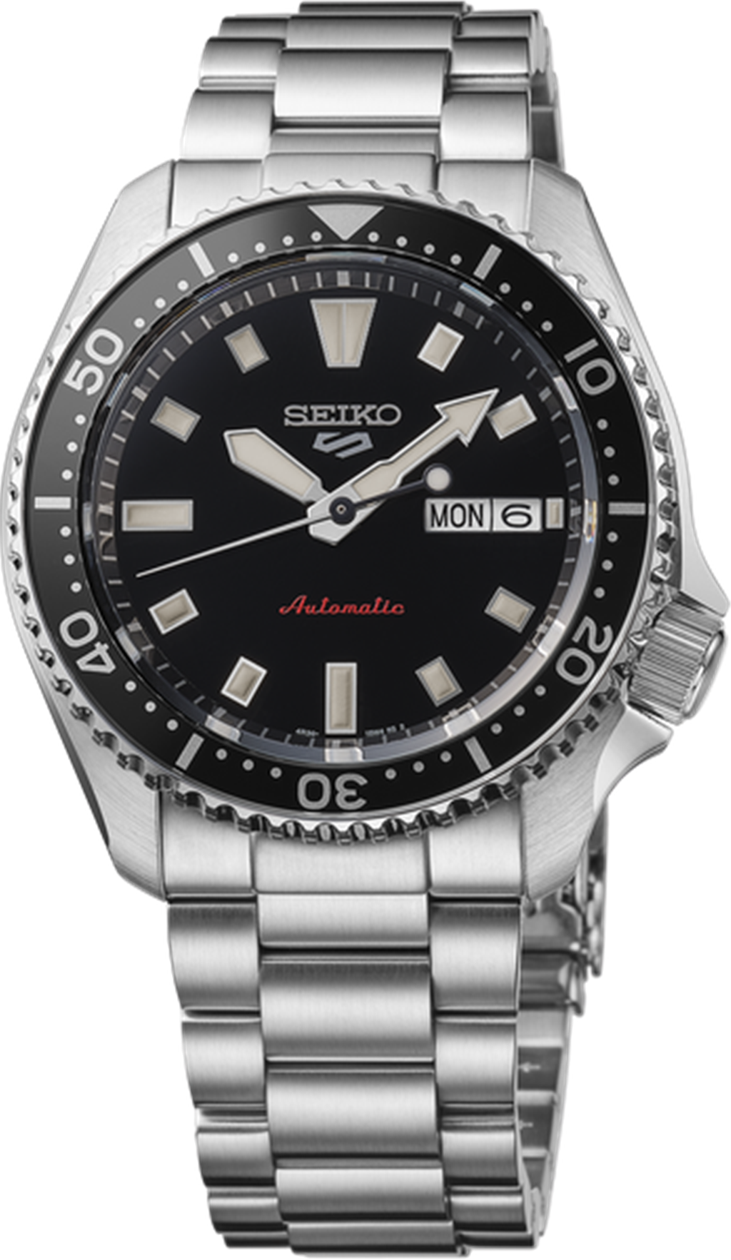 Seiko 5 SportsShow your style. Make your move. Since the 1960s, Seiko 5 Sports has delivered consistently high levels of reliability, durability, and performance. Paying homage to Seiko’s iconic SKX models of the past, this creation inherits the layout of the original, featuring indexes with a rich texture and hands with a distinct, yet refined design. For dependable timekeeping in your everyday life, this exceptional watch is powered by an automatic movement with a power reserve of approximately 41 hours and is equipped with a day/date calendar, LumiBrite hands and markers, and a see-through caseback. Crafted of stainless steel, this versatile timepiece displays a deep black dial framed by a coordinating rotating bezel with a glossy Hardlex insert for a sophisticated feel. Water resistant to 100 meters, the Seiko 5 Sports collection is perfect for your style no matter what your day has in store.