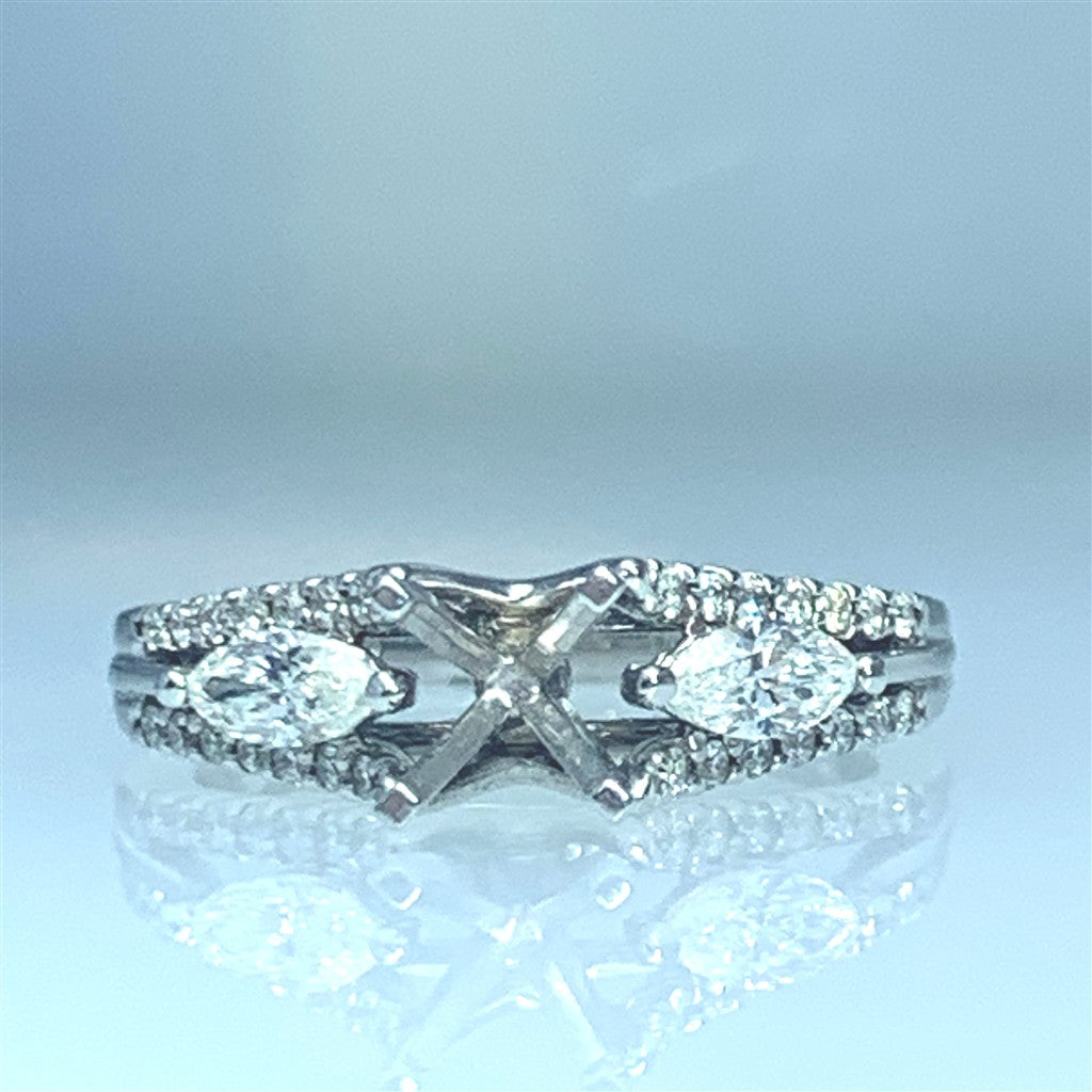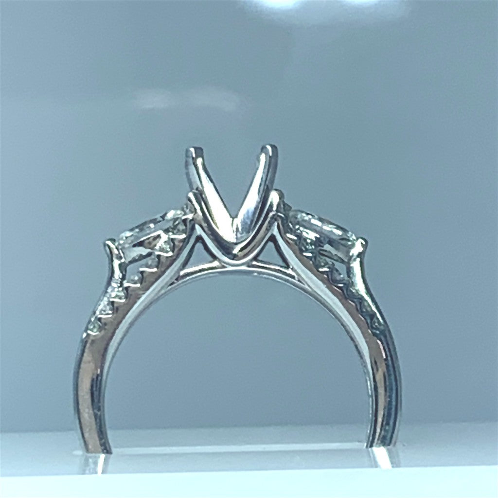 14Kt White Gold Three-Stone Engagement Ring.666ctw2 Marquise Diamond .20 Ct Each