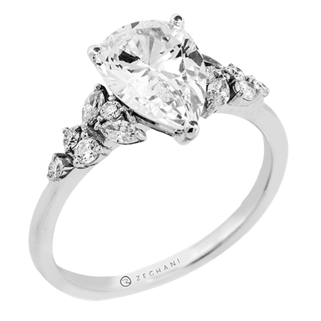 14K White Gold Cluster Diamond Engagement Ring Mounting.27tdw*CZ Center Stone*