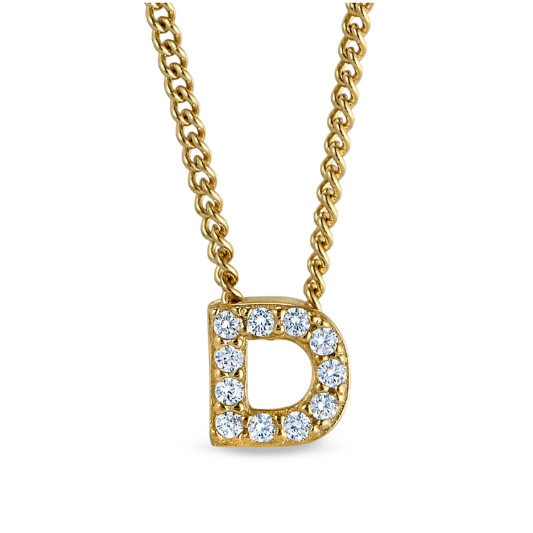 Gold finish sterling silver micropave d initial pendant with simulated diamonds on 18 curb chain
