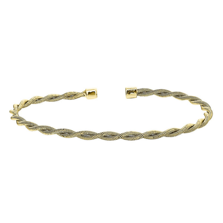 Gold finish sterling silver thin tightly twisted cable cuff bracelet