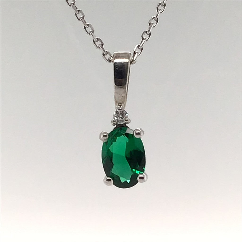 Sterling Silver 7x5 Oval Created Emerald Pendant with 18" Chain