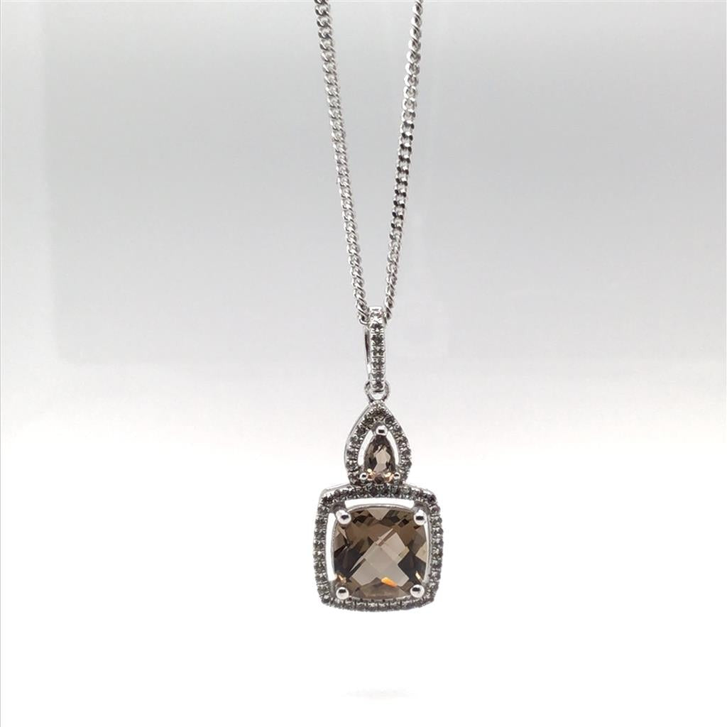STERLING SILVER SQUARE SMOKEY CENTER WITH 1.95CTTW WHITE TOPAZ BORDER PENDANT