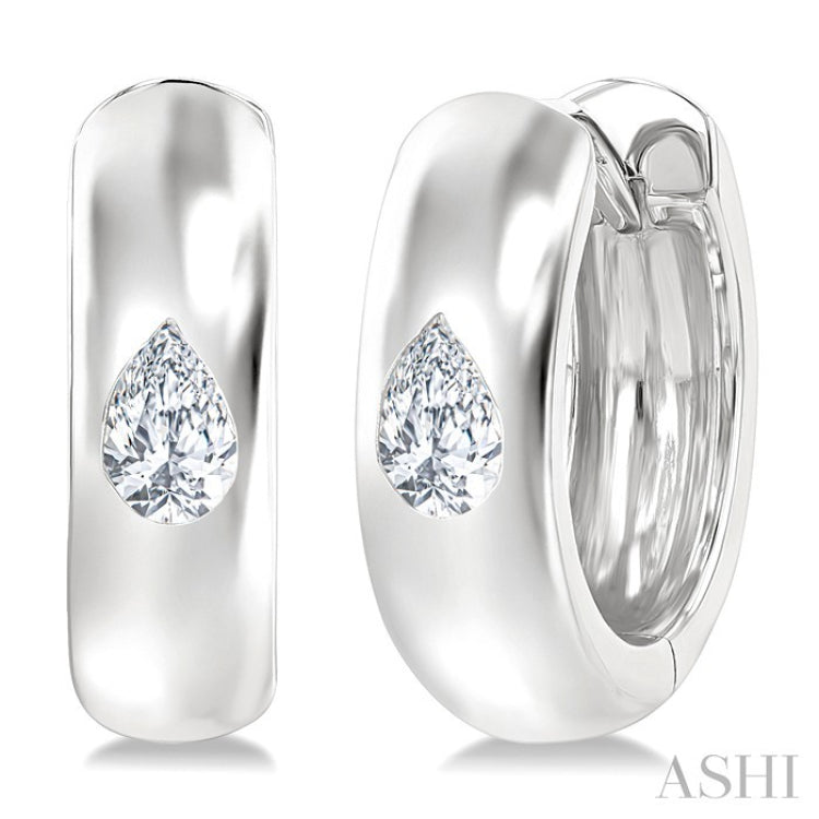 1/4 Ctw Bezel Set Pear Cut Diamond Fashion Huggie Earrings in 14K White Gold