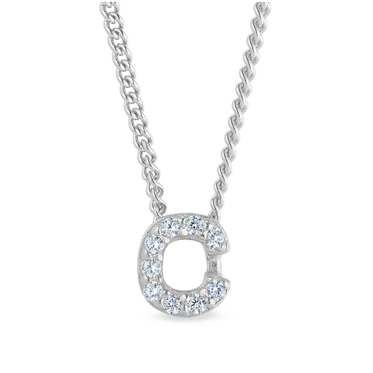 Platinum finish sterling silver micropave c initial pendant with simulated diamonds on 18 curb chain
