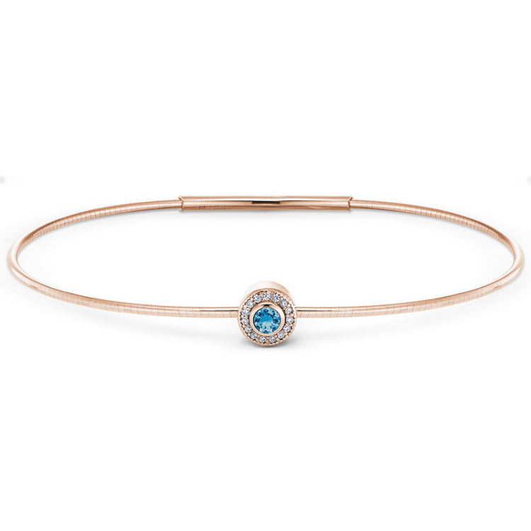 Rose Gold Finish Finish Sterling Silver Round Simulated Blue Topaz Birth Gem Bracelet with Simulated Diamonds