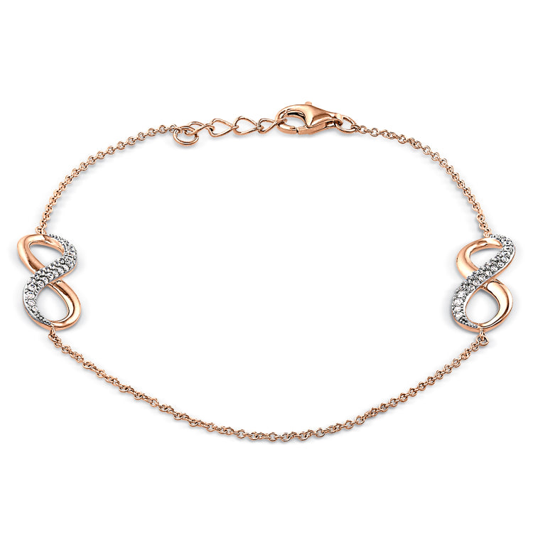 Rose gold finish sterling silver micropave double infinity bracelet with simulated diamonds with 7.25 cable chain & .5 extender