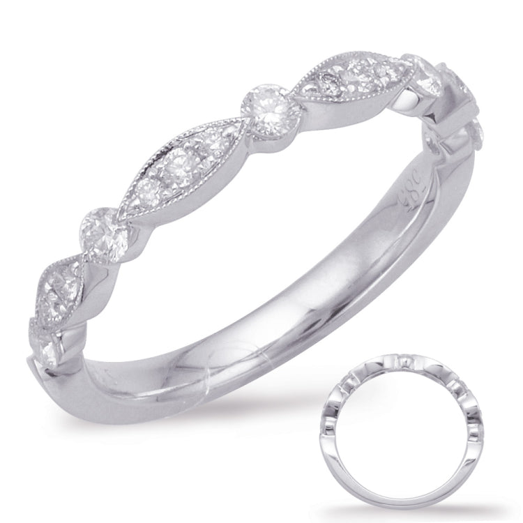 This band is available in 14K White Gold. There are a total of 15 stones. There are Rounds with a total carat weight of 0.47 set in a Micro Prong|Prong Set setting.